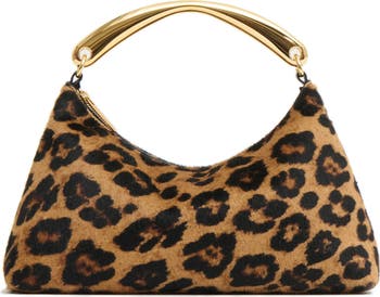 Carry the essentials in retro elegance with this softly slouched handbag crafted from genuine Italian calf hair with a velvety sheen. A gleaming metal handle arcs across the top with architectural grace, offering a sculptural counterpoint to the tactile softness.