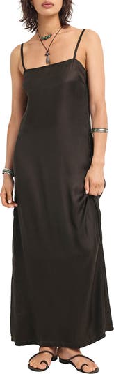 Soft and satiny, this sunny-day cover-up maxi is made in a drapey silhouette and perfected with pockets.
