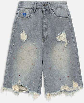 The Aelfric Eden Rhinestone Application Jorts bring a playful edge to classic denim shorts with a carefully distressed hem and sparkling rhinestone embellishments. Each rhinestone is securely studded for durability, ensuring the design remains intact through regular wear. Featuring two distinct logo variations, these shorts allow you to express your personal style with subtle yet meaningful detail. Designed for casual comfort and standout appeal, they pair effortlessly with a range of tops and footwear for versatile summer styling.