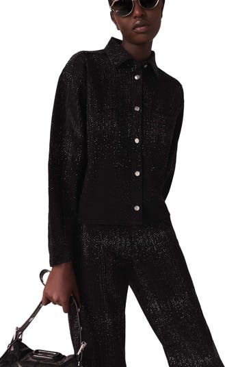 This season is all about an interplay of texture and light, and the Maje studio is boldly reinventing classic pieces. Covered entirely in tone-on-tone rhinestones, this denim shirt will make your winter sparkle. With long sleeves and a button fastening, it can be worn open as an overshirt or buttoned all the way up. Add the matching jeans for a total look, with chic loafers and a fringed bag.