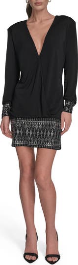 Rhinestone Detail Long Sleeve Dress
