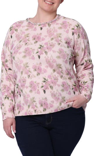 Sparkling rhinestones trace the crewneck of a this cashmere-kissed sweater that brings a bit of glam to any look.