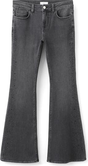 Rhinestone Embellished Low Rise Flare Jeans