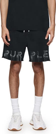 A dripping rhinestone logo create a rockstar aesthetic on soft fleece sweat shorts that feature flare legs for effortless Y2K energy.