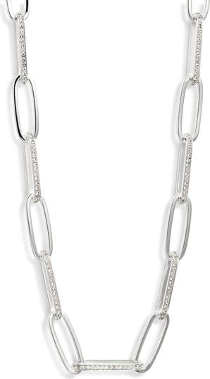 Lines of rhinestones alternate shine across this polished linked necklace that's perfect for stacking.