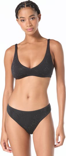 Say goodbye to a boring bikini top and hello to getaway glam. This bikini bra top gets a glitzy touch with a rhinestone front. Pair it with coordinating rhinestone bikini or a classic solid color bottom.