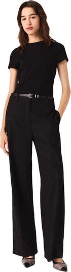 This season, bold black pieces and precious accessories are enhancing every silhouette with radiance, intensity and refinement.Suit trousers, revisited with a touch of sparkle. Adorned with fine stripes highlighted by subtle rhinestones, they play on the contrast between masculine and feminine. Their wide cut elongates the figure, while the belt loops and discreet fastening define the waist.Pair with a close-fitting T-shirt, a belt and transparent rhinestone heels for an elegant and assertive look.