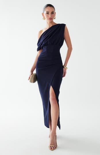 The RHODIA MIDI DRESS by BWLDR is a striking one-shoulder maxi dress that exudes modern elegance. The asymmetric neckline and structured bodice create a sleek, sculptural silhouette, while the fluid skirt drapes beautifully to the floor.
