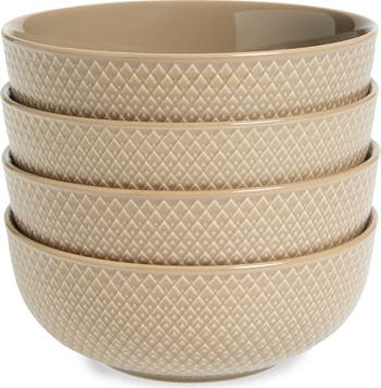An elegant earthy palette invites you and your guests to slow down and be present around the table set with these bowls in a tactile pattern inspired by the rhomboid motif from the brand's archives.