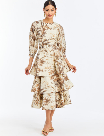 The Rhonda Convertible™ Midi Dress brings dynamic design and elevated charm to your wardrobe. Crafted in our signature Chestnut Brown Toile print, this versatile style seamlessly transforms from midi to mini with a hidden zipper in the skirt tiers - perfect for maximizing wear from daytime gatherings to evening celebrations. Feminine and functional, it features flattering princess seams, pockets, and a flared silhouette designed to move beautifully with you.