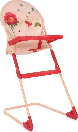 ROMA PRAMS: RHS HIGHCHAIR - FLORA - Combining sustainability with timeless style, the Roma RHS Dolls Highchair is crafted from eco-friendly fabrics made from recycled bottles. Its elegant cream finish, complemented by berry red accents, creates a modern, charming look that beautifully blends into any child’s play space. Inspired by THE ROYAL HORTICULTURAL SOCIETY, the design features stunning artwork that brings the beauty of nature to imaginative play. Lightweight and practical, this highchair easily comes apart for convenient, space-saving storage. Perfect for nurturing play and mealtime role play with dolls and teddies sized 11" to 16.5" (28–42 cm), it encourages creativity while supporting responsible material choices. A delightful addition to the exclusive Roma x RHS collection, this piece celebrates British heritage and the joy of gardening through thoughtful design and playful elegance. NOTE: Doll is NOT included. DIMENSIONS: Height: 25.2" (64cm), Length: 15.7" (40cm), Width: 11.8" (30cm). THE ROYAL HORTICULTURAL SOCIETY (RHS), the UK’s leading gardening charity, inspires a love for plants and green spaces. Created in collaboration with the RHS, this exclusive Roma X RHS dolls’ pram collection, features designs inspired by artwork from Gertrude Jekyll and the RHS Lindley Collections. Crafted with fabric made from recycled plastic bottles, these elegant prams blend heritage with sustainability. Reflecting the beauty of British gardening, the RHS’s mission is to be there on people’s lifelong journey with gardening – to bring happiness, health, stronger communities and a thriving natural world.