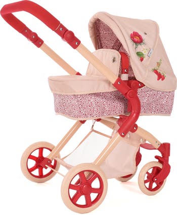 ROMA PRAMS: RHS SINGLE DOLLS PRAM - FLORA - The Roma RHS Flora Single Dolls Pram is the perfect choice for little ones aged 3 and up, designed to grow with them thanks to its adjustable handle height (21.7"-30.7", 55-78 cm). Ideal for nurturing and imaginative play, it features a versatile 2-in-1 carry cot that easily converts into a seat unit using simple poppers. The seat includes a 3-point harness to keep dolls and teddies secure on every adventure. Crafted from durable, eco-friendly fabrics made from recycled plastic bottles, the RHS Flora pram blends sustainability with beautiful design. The elegant cream frame paired with berry-red accents creates a charming, modern look. Inspired by THE ROYAL HORTICULTURAL SOCIETY, the floral print showcases authentic artwork from the RHS archives, celebrating the beauty of nature. The Flora pram also includes thoughtful accessories for enhanced play — a coordinating changing bag that attaches to the handle, a removable apron, and a handy shopping basket for all those must-bring essentials. Lightweight and foldable, it’s easy to store and perfect for on-the-go adventures. WHAT’S INCLUDED: RHS Flora Single Dolls Pram. 2-in-1 carry cot/seat unit. Coordinating changing bag. Removable carry cot apron. Shopping basket. DIMENSIONS: Depth of cot: 5.9" (15cm). Mattress size: 17.3" x 9" (44 x 23cm). NOTE: Doll is NOT included. THE ROYAL HORTICULTURAL SOCIETY (RHS), the UK’s leading gardening charity, inspires a love for plants and green spaces. Created in collaboration with the RHS, this exclusive Roma X RHS dolls’ pram collection, features designs inspired by artwork from Gertrude Jekyll and the RHS Lindley Collections. Crafted with fabric made from recycled plastic bottles, these elegant prams blend heritage with sustainability. Reflecting the beauty of British gardening, the RHS’s mission is to be there on people’s lifelong journey with gardening – to bring happiness, health, stronger communities and a thriving natural world.