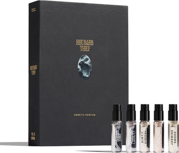 - RHUBARB THIEF: Rhubarb, Grapefruit, Angelica, Pink Jasmine, Cedar, Oakmoss