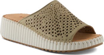 A cushioned footbed lined in leather and a perforated strap deliver breathable comfort to this beach sandal boosted on a walkable wedge heel.