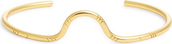A sinuous silhouette defines this sculptural cuff bracelet made from glowing vermeil. Subtle engraved texture enhances the fluid lines, catching the light and adding depth to the modern design.