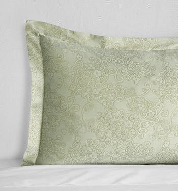 A long-staple cotton sham featuring yarn-dyed floral jacquard and a wide flange adds a seaside-inspired ambience to your bedroom.