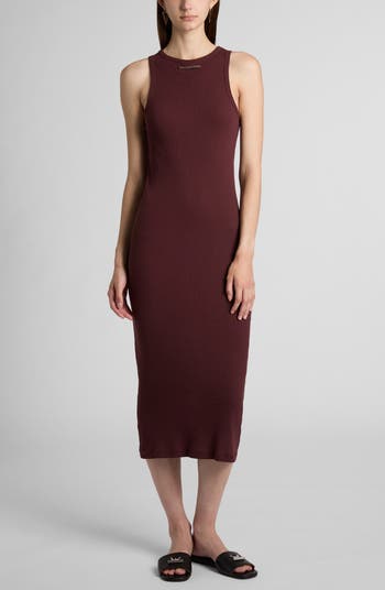 A minimalist logo plaque brands the front of this sleeveless midi dress crafted in a body-con fit from cotton rib.