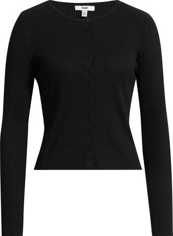 Allover ribbing adds texture and shape to this close-fitting cardigan accented with tonal front buttons.