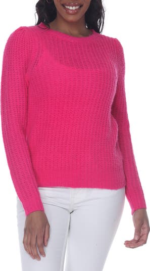 Puff shoulders sweeten the silhouette of this cozy fuzzy-textured sweater knit with a classic crewneck.