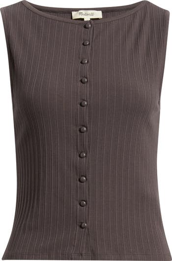 Build out your wardrobe with this vest-tank made with a classic crewneck and buttons down the front. Coming in a ribbed cotton blend, it's a laid-back piece to complement your favorite ensembles.