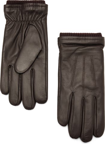 A wool-blend lining and ribbed cuffs block out the cold as you take on the day in these leather gloves.