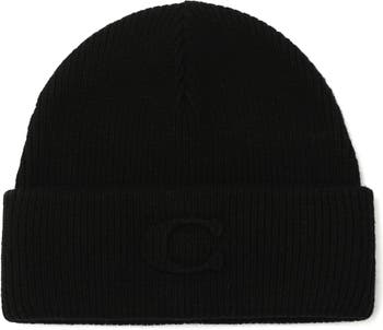 Keep your head warm in this classic ribbed beanie made from a cozy wool blend and embossed with a tonal logo.