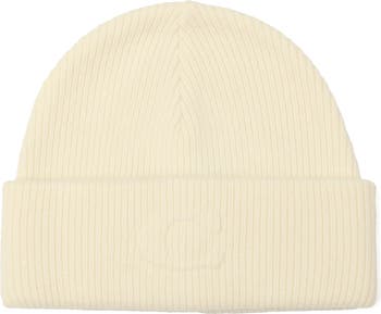 Keep your head warm in this classic ribbed beanie made from a cozy wool blend and embossed with a tonal logo.