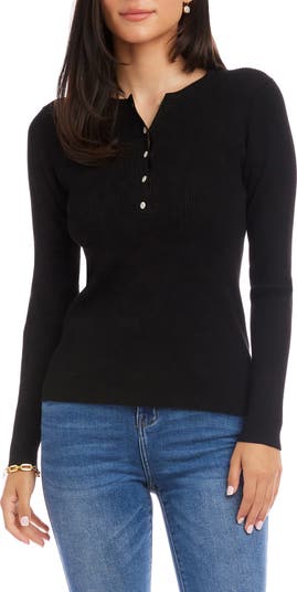 This slim-fit sweater is a timeless essential designed for everyday wear. Imagined in a soft rib knit that offers stretch and texture, it features a classic crew neckline, long set-in sleeves,and a five-button placket for versatile styling.