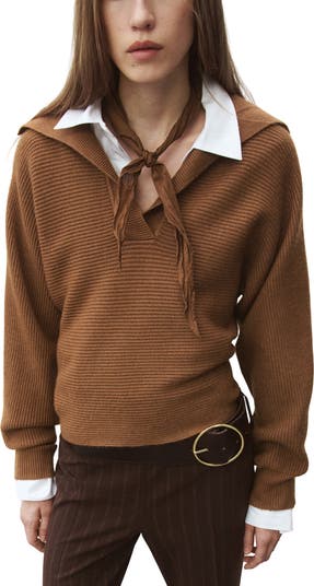 A relaxed and slouchy sweater knit with soft ribbing and finished with an open collar keeps you looking sporty and relaxed.