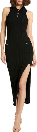 Rib Knit Collared Sleeveless Fitted Maxi Dress