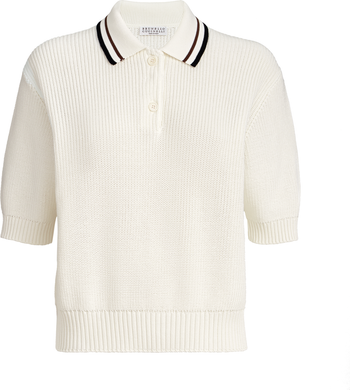 - Shirt-style collar with button openingRibbed bottom bandEnglish rib