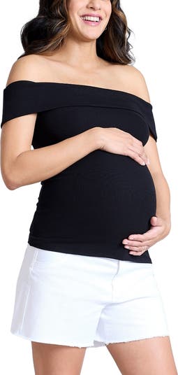 Motherhood's short-sleeve off the shoulder top is crafted from soft micro rib fabric and offers a stylish, elevated look that grows with you. The off the shoulder sleeves add a touch of sophistication, making it perfect for lounging or layering during your pregnancy and beyond!
