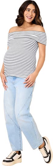 Motherhood's short-sleeve off the shoulder top is crafted from soft micro rib fabric and offers a stylish, elevated look that grows with you. The off the shoulder sleeves add a touch of sophistication, making it perfect for lounging or layering during your pregnancy and beyond!