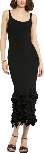 Rib Knit Sleeveless Ruffle Hem Midi Dress