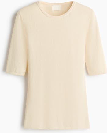 Fitted T-shirt in a fine rib knit with a narrow trim around the neckline and elbow-length sleeves.