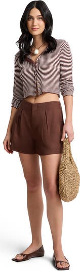 This cardigan is knit from textured linen yarns with ribbed cuffs and waistband. The relaxed fit offers ease while maintaining structure through the trim. Perfect for the everyday look.