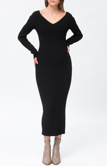Rib Long Sleeve Maternity Midi Sweater Dress