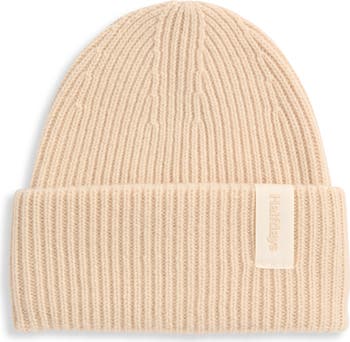 Stave off colder climes in this ribbed beanie knit from cozy merino-wool yarn and branded with a tonal logo patch at the cuffed brim.