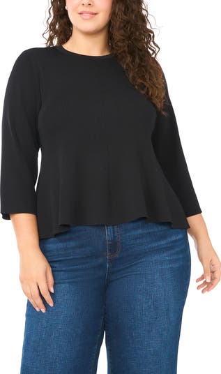Soft ribbing and three-quarter sleeves bring season-spanning charm to this cozy sweater finished with a fluttery peplum for feminine detail.