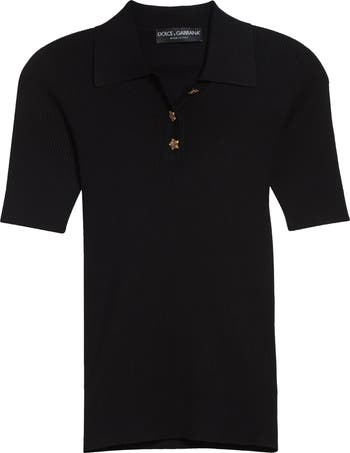 Jeweled flower-shaped buttons beguilingly brighten the half placket of this rib polo sweater ready to take up its staple status in your casual wardrobe.