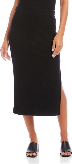 Rib Side Slit Midi Skirt
