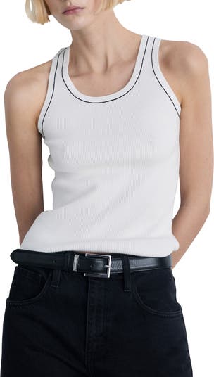 Fine allover ribbing textures this close-fitting tank that's ideal for layering or wearing alone.
