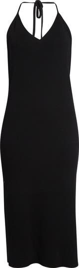 Minimalist elegance, clean lines and impeccable tailoring collide in this curve-hugging slipdress knit in a ribbed stitch from virgin-wool yarn for natural breathability.