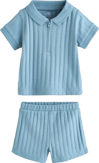 Bring a perfectly preppy vibe to baby's wardrobe with this ribbed stretch-cotton set featuring a zip-style polo and a pair of matching shorts.