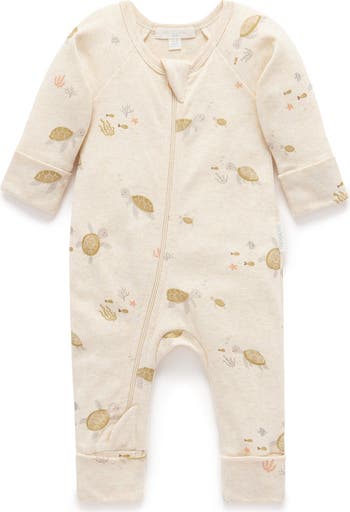Purebaby Rib Zip Printed Romper Turtle Print, Alternate, color, Little Turtles Print