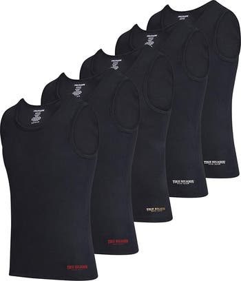 Elevate your casual style with True Religion's Men's Ribbed Cotton Tank Tops, now available in a convenient 5-pack! Crafted from premium ribbed cotton, these tank tops offer a comfortable and breathable fit for all-day wear, whether you're hitting the gym or lounging at home. With a range of classic colors to choose from, you can mix and match these tank tops with any outfit for effortless versatility. Upgrade your wardrobe essentials today with True Religion's Men's Ribbed Cotton Tank Tops - quality and style you can trust.