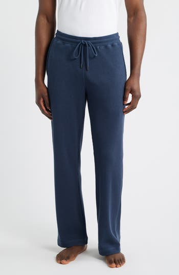 A soft, stretch-enhanced ribbed knit takes you from lazy weekends to sweet slumber and back in pajama pants that cinch at the waist and stay roomy down the legs for easy movement. Stow daytime essentials in the handy pockets when sleepytime is over.