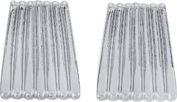 A silver plated rectangle shape with ribbed indents. The Ribbed Silver earrings might just be your new every day pair.