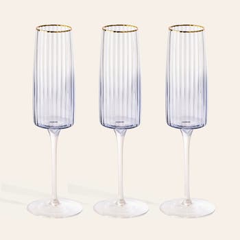 Ribbed Flute Champagne Glass 8 Oz. Set Of 3