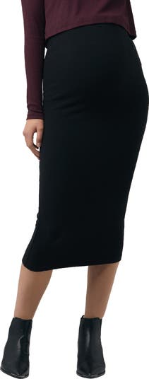 Ripe Maternity Ribbed Knit Pencil Skirt, Main, color, Black